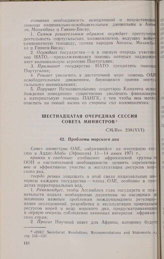 Шестнадцатая очередная сессия Совета министров. CM/Res. 238(XVI). Проблемы морского дна. Аддис-Абеба, 11-14 июня 1971 г. // «OAU Secretariat. Resolutions, Recommendations and Statements...»,, стр. 135-137.