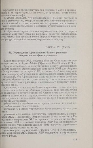 Семнадцатая очередная сессия Совета министров. CM/Res. 251 (XVII). Учреждение Африканским банком развития Африканского фонда развития. Аддис-Абеба, 15-19 июня 1971 г. // «OAU Secretariat. Resolutions, Recommendations and Statements...», стр. 138-162.