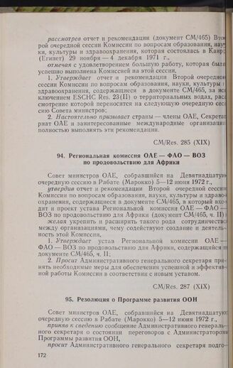 Девятнадцатая очередная сессия Совета министров. CM/Res. 287 (XIX). Резолюция о Программе развития ООН. Рабат, 5-12 июня 1972 г. // «OAU Secretariat. Resolutions, Recommendations...», стр. 173-218.