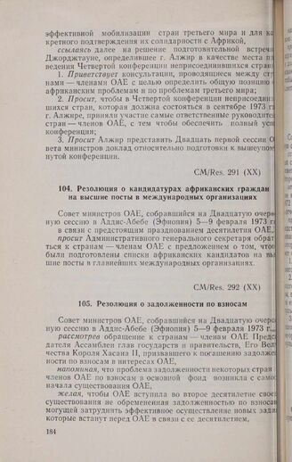 Двадцатая очередная сессия Совета министров. CM/Res. 291 (XX). Резолюция о кандидатурах африканских граждан на высшие посты в международных организациях. Аддис-Абеба, 5-9 февраля 1973 г. // «OAU Secretariat. Resolutions, Recommendations and Statements...», стр. 219-236.