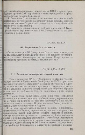 Двадцатая очередная сессия Совета министров. CM/St. 8/Rev. 2 (XX). Заявление по вопросам текущей политики. Аддис-Абеба, 5-9 февраля 1973 г. // «OAU Secretariat. Resolutions, Recommendations and Statements...», стр. 219-236.