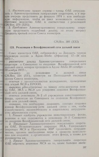 Двадцать первая очередная сессия Совета министров. /QM/Res. 309 (XXI). Резолюция о Всеафриканской сети дальней связи. Аддис-Абеба, 17-24 мая 1973 г. // «OAU Secretariat. Resolutions, Recommendations and Statements adopted by the Twenty-First Session of the Council of Ministers», Add Ababa, 1973.