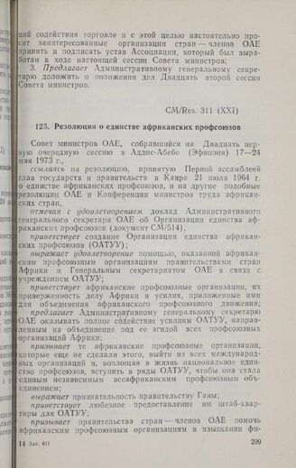 Двадцать первая очередная сессия Совета министров. CM/Res. 311 (XXI). Резолюция о единстве африканских профсоюзов. Аддис-Абеба, 17-24 мая 1973 г. // «OAU Secretariat. Resolutions, Recommendations and Statements adopted by the Twenty-First Session of the Council of Ministers», Add Ababa, 1973.