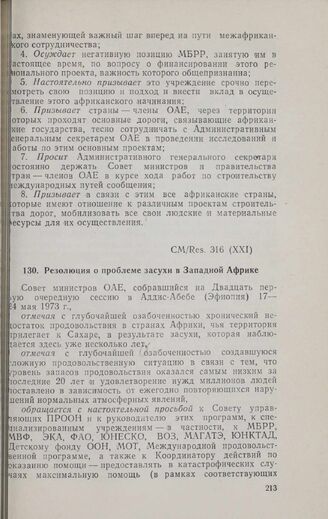 Двадцать первая очередная сессия Совета министров. CM/Res. 316 (XXI). Резолюция о проблеме засухи в Западной Африке. Аддис-Абеба, 17-24 мая 1973 г. // «OAU Secretariat. Resolutions, Recommendations and Statements adopted by the Twenty-First Session of the Council of Ministers», Add Ababa, 1973.