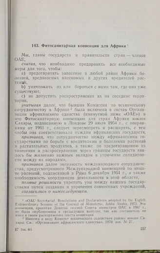 Фитосанитарная конвенция для Африки. Конго, 13 сентября 1967 г. // «OAU Secretariat. Resolutions and Declarations adopted by the Eighth Extraordinary Session of the Council of Ministers», Addis Ababa, 1973.