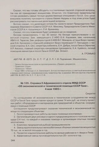 Справка II Африканского отдела МИД СССР «Об экономической и технической помощи СССР Гане». 4 мая 1965 г.