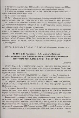 Б.И. Караваев - Я.А. Малику. Записка об экономическом и финансовом положении Ганы и позиция советского посольства в Аккре. 1 июня 1965 г.