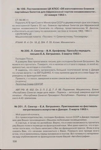 Главная Россия и Африка. 1961-начало 1970-х Л. Сенгор - Е.А. Евтушенко. Приглашение на фестиваль негритянского ...