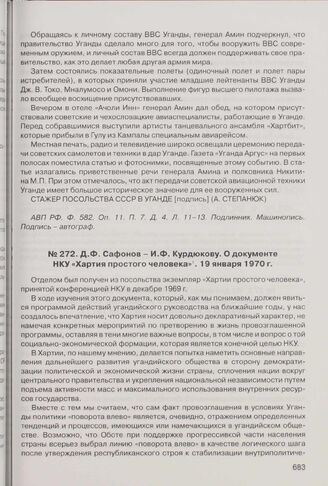Д.Ф. Сафонов - И.Ф. Курдюкову. О документе НКУ «Хартия простого человека». 19 января 1970 г. // АВП РФ. Ф. 582. Оп. 13. П. 9. Д. 7. Л. 13-14. Подлинник. Машинопись. Подпись - автограф.