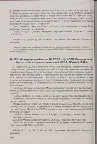 Международный отдел ЦК КПСС - ЦК КПСС. Предложение об оплате билетов представителей МПЛА. 12 июля 1962 г. // РГАНИ. Ф. 5. Оп. 50. Д. 415. Л. 242. Подлинник. Машинопись. Подпись - автограф.