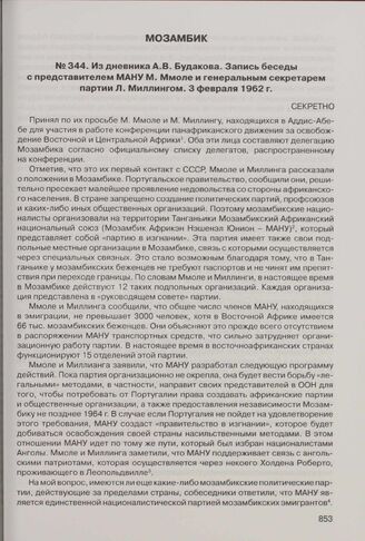 Из дневника А.В. Будакова. Запись беседы с представителем МАНУ М. Ммоле и генеральным секретарем партии Л. Миллингом. 3 февраля 1962 г.