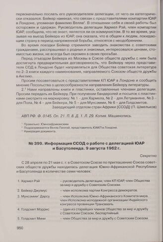 Главная Россия и Африка. 1961-начало 1970-х Информация ССОД о работе с делегацией ЮАР и Басутоленда. 9 августа ...