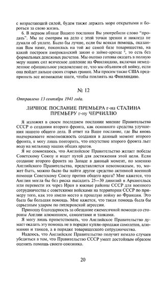 Личное послание премьера г-на Сталина премьеру г-ну Черчиллю. Отправлено 13 сентября 1941 года