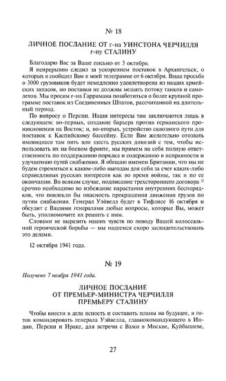 Личное послание от г-на Уинстона Черчилля г-ну Сталину. 12 октября 1941 года