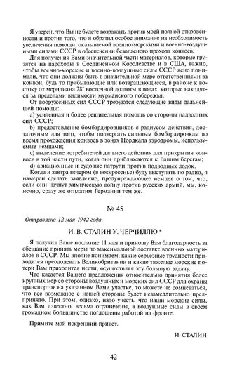 И.В. Сталин У. Черчиллю. Отправлено 12 мая 1942 года