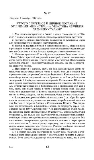 Строго секретное и личное послание от премьер-министра г-на Уинстона Черчилля премьеру Сталину. Получено 9 октября 1942 года [2]