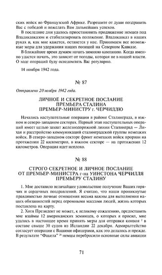 Личное и секретное послание премьера Сталина премьер-министру г. Черчиллю. Отправлено 20 ноября 1942 года
