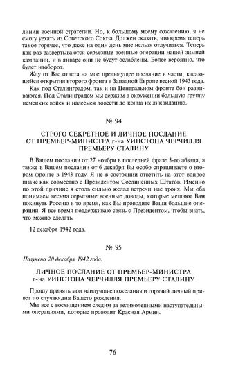 Строго секретное и личное послание от премьер-министра г-на Уинстона Черчилля премьеру Сталину. 12 декабря 1942 года
