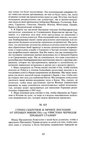 Строго секретное и личное послание от премьер-министра г-на Уинстона Черчилля премьеру Сталину. 27 января 1943 года