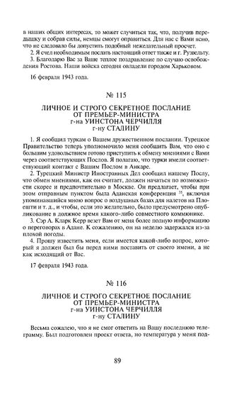 Личное и строго секретное послание от премьер-министра г-на Уинстона Черчилля г-ну Сталину. 17 февраля 1943 года