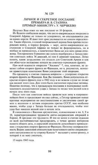 Личное и секретное послание премьера И.В. Сталина премьер-министру г. У. Черчиллю. Отправлено 15 марта 1943 года [3]