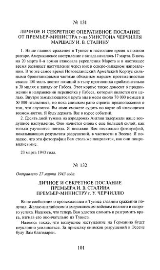 Личное и строго секретное оперативное послание от премьер-министра г-на Уинстона Черчилля маршалу И.В. Сталину. 23 марта 1943 года