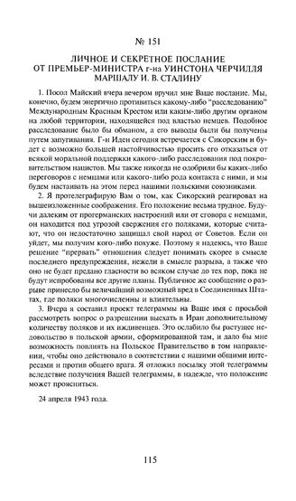 Личное и секретное послание от премьер-министра г-на Уинстона Черчилля маршалу И.В. Сталину. 24 апреля 1943 года