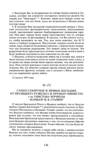 Строго секретное и личное послание от президента Рузвельта и премьер-министра г-на Уинстона Черчилля маршалу И.В. Сталину. 19 августа 1943 года