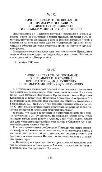 Личное и секретное послание от премьера И.В. Сталина президенту г-ну Ф.Д. Рузвельту и премьер-министру г-ну У. Черчиллю. 12 сентября 1943 года