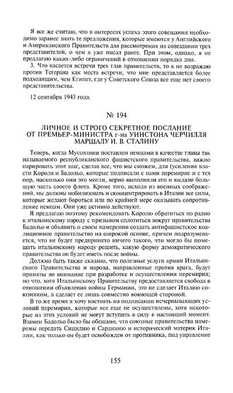 Личное и строго секретное послание от премьер-министра г-на Уинстона Черчилля маршалу И.В. Сталину. 21 сентября 1943 года