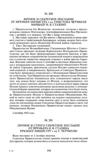 Личное и секретное послание от премьер-министра г-на Уинстона Черчилля маршалу И.В. Сталину. 2 октября 1943 года