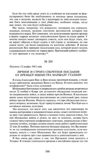 Личное и строго секретное послание от премьер-министра маршалу Сталину. Получено 12 ноября 1943 года [1]