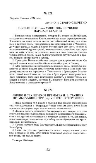 Лично и секретно от премьера И.В. Сталина премьер-министру г-ну Уинстону Черчиллю. 7 января 1944 года