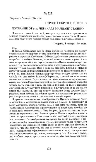 Строго секретно и лично. Послание от г-на Черчилля маршалу Сталину. Получено 12 января 1944 года