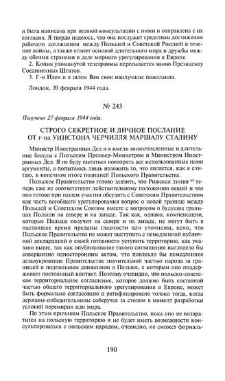Строго секретное и личное послание от г-на Уинстона Черчилля маршалу Сталину. 20 февраля 1944 года. Получено 27 февраля 1944 года [2]