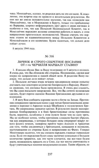Личное и строго секретное послание от г-на Черчилля маршалу Сталину. 10 августа 1944 года