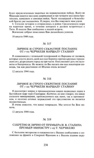 Личное и строго секретное послание от г-на Черчилля маршалу Сталину. 12 августа 1944 года [1]