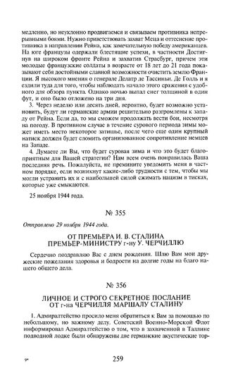 От премьера И.В. Сталина премьер-министру г-ну У. Черчиллю. Отправлено 29 ноября 1944 года