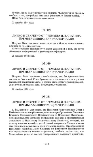 Лично и секретно от премьера И.В. Сталина премьер-министру г-ну У. Черчиллю. 25 декабря 1944 года