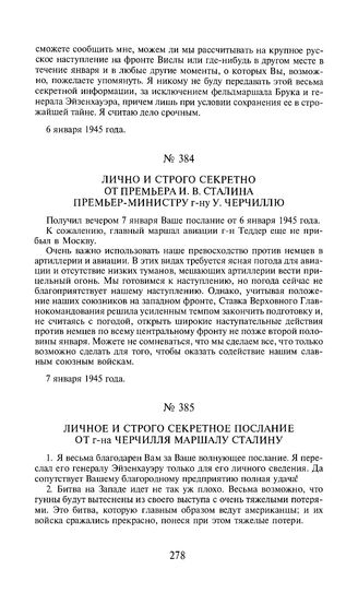 Лично и строго секретно от премьера И.В. Сталина премьер-министру г-ну У. Черчиллю. 7 января 1945 года