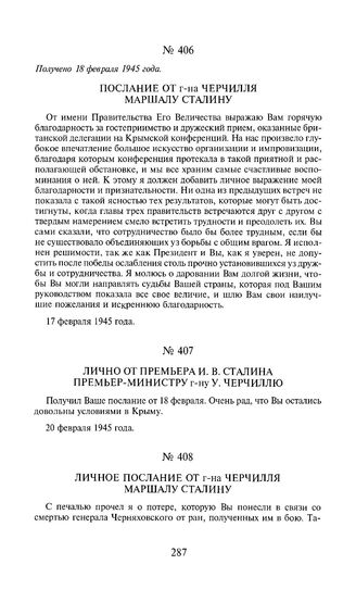 Лично от премьера И.В. Сталина премьер-министру г-ну У. Черчиллю. 20 февраля 1945 года