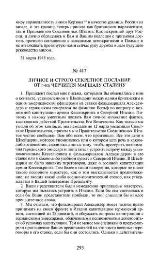 Личное и строго секретное послание от г-на Черчилля маршалу Сталину. 5 апреля 1945 года