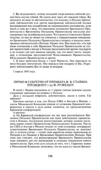 Приложение к посланию И.В. Сталина У. Черчиллю от 7 апреля 1945 года. Лично и секретно от премьера И.В. Сталина президенту г-ну Ф. Рузвельту. 7 апреля 1945 года [1]