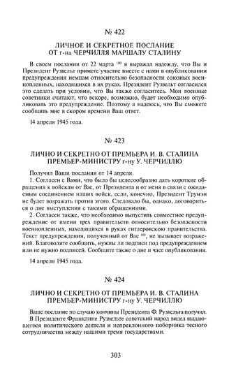 Лично и секретно от премьера И.В. Сталина премьер-министру г-ну У. Черчиллю. 14 апреля 1945 года