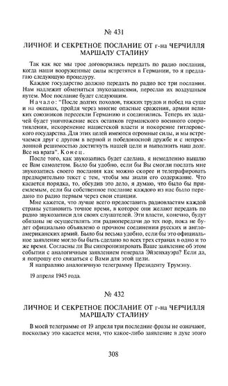 Личное и секретное послание от г-на Черчилля маршалу Сталину. 20 апреля 1945 года