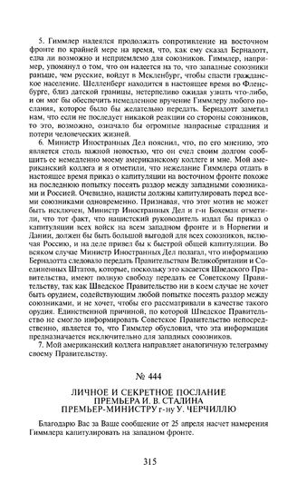 Личное и секретное послание премьера И.В. Сталина премьер-министру г-ну У. Черчиллю. 25 апреля 1945 года