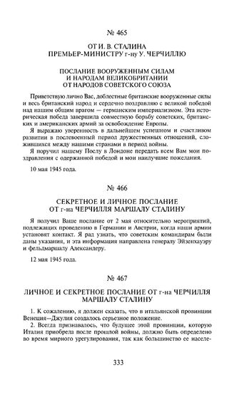 От И.В. Сталина премьер-министру г-ну У. Черчиллю. Послание вооруженным силам и народам Великобритании от народов Советского Союза. 10 мая 1945 года
