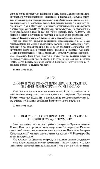Приложение к посланию И.В. Сталина У. Черчиллю от 22 мая 1945 года. Лично и секретно от премьера И.В. Сталина президенту г-ну Г. Трумэну. 22 мая 1945 года