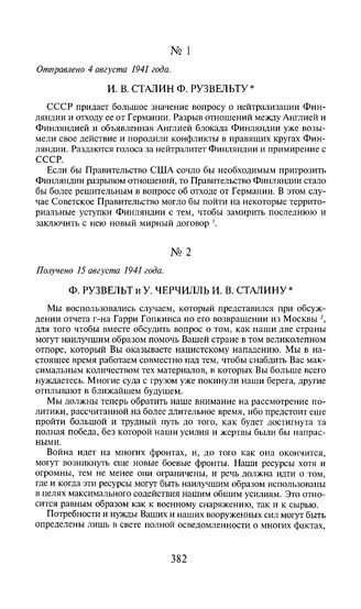 Ф. Рузвельт и У. Черчилль И.В. Сталину. Получено 15 августа 1941 года