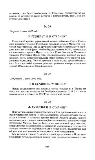 И.В. Сталин Ф. Рузвельту. Отправлено 7 июля 1942 года